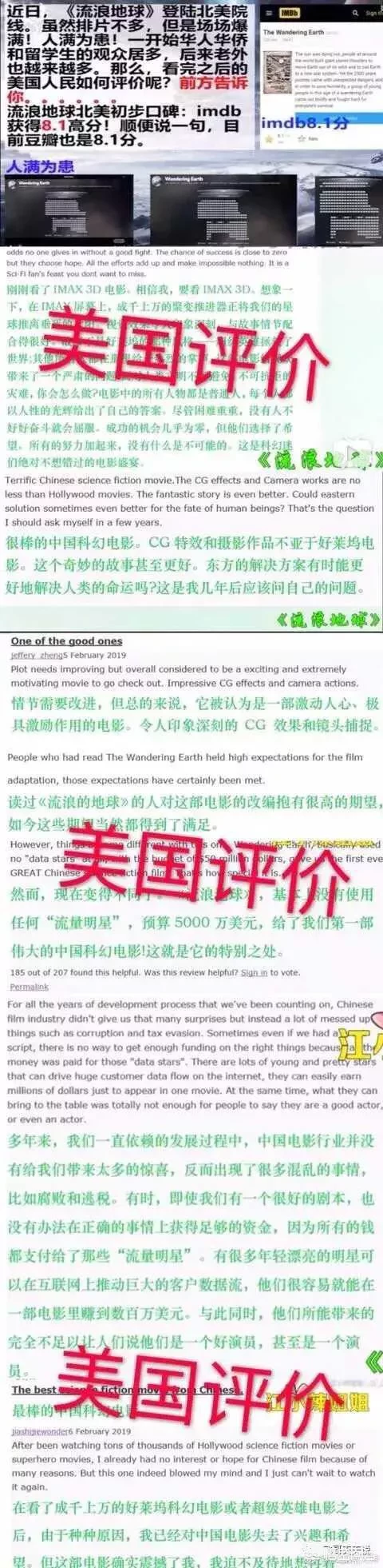 其实流浪地球在北美电影院,日本,韩国等地方上映后,得到了不少国外网友的评论,先看一下北美对的网友对《流浪地球》的评价吧!