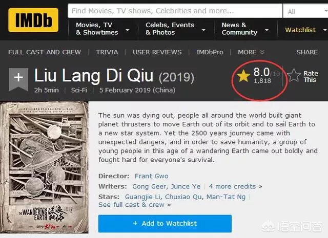 可以说南朝鲜的网友评论酸不溜秋哈,不过其实最能够代表国外影迷的评分还是北美的IMDB哈,流浪地球在IMDB的最新评分是8分,比国内豆瓣上的评分7.9分还要高