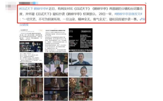 这部剧自宣传以来就一直标注着“S 级的制作”,但是很多观众在看了几集之后都觉得和前几年播出的《鹤唳华亭》里的台词和场景布置都非常像,但是最后只有小说作者出来回应自己的小说没有抄袭,剧方没有任何回应,并且已经对网上的质疑处于一个“摆烂’的状态。