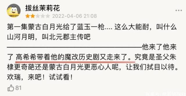就比如朱棣和徐妙云的感情戏,观众想要看到的是朱棣和徐妙云“帝后”情深的感情戏,而不是剧中朱棣为了不娶徐妙云而逃婚到战场上从而遇见“白月光”海别公主的副线。