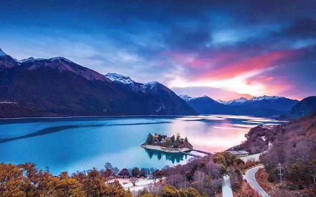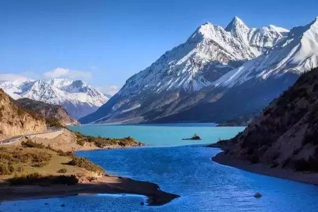 你会看到纯净的然乌湖,在藏语里,然乌湖意为“山羊奶一样的湖”。北面绵延巍峨的来古冰川一直延伸至湖边,化作平和宁静的湖水,孕育着一片肥沃的土地。春天是观赏然乌湖的好时候,湖畔操场抽芽吐绿,周围高山峻岭环绕,尽数倒映在碧蓝的湖面上,用纯天然的美景涤荡来客的心灵。