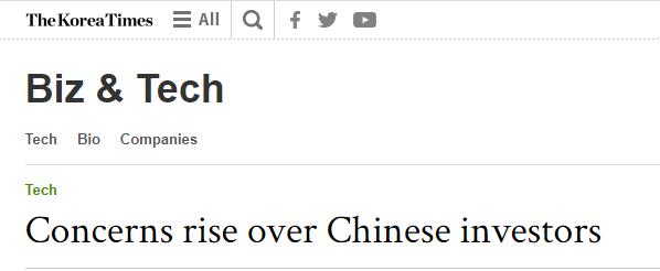 今年5月,韩国经济新闻抛出了一个问题:“很长时间以来,韩国民众对美国资本好像也没有什么争议,但为何唯独对中国资本如此敏感?”