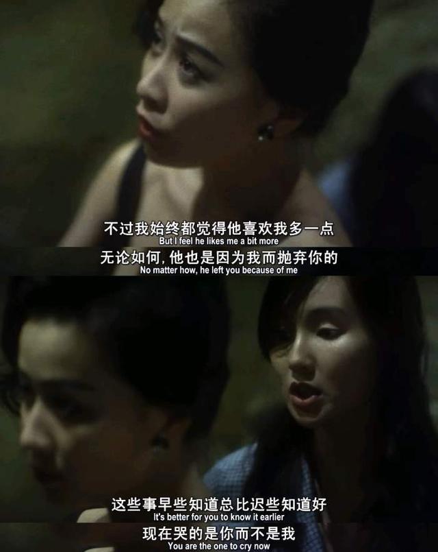 台词对白设计同样是与角色性格贴合的,苏丽珍性格温柔,表达爱意时是小心翼翼地试探,而梁凤英表达爱意时,更直接、大胆,她虽然吃阿珍的醋,却不愿意离开阿飞,从始至终一直黏着他,在阿飞面前她愿意拔掉身上的刺。此外,阿珍和她在后面一次冲突对白时,台词设计也耐人寻味,阿珍无奈地说道:"现在哭的是你,我已经没事了",此处暗示爱与恨都会随时时间被冲淡,关键在于故事中的人愿不愿意去忘记。