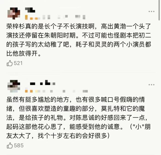 不合适的角色以及不合适的剧本,让荣梓杉的演技备受质疑,被观众批评“光长个子不长演技”。
