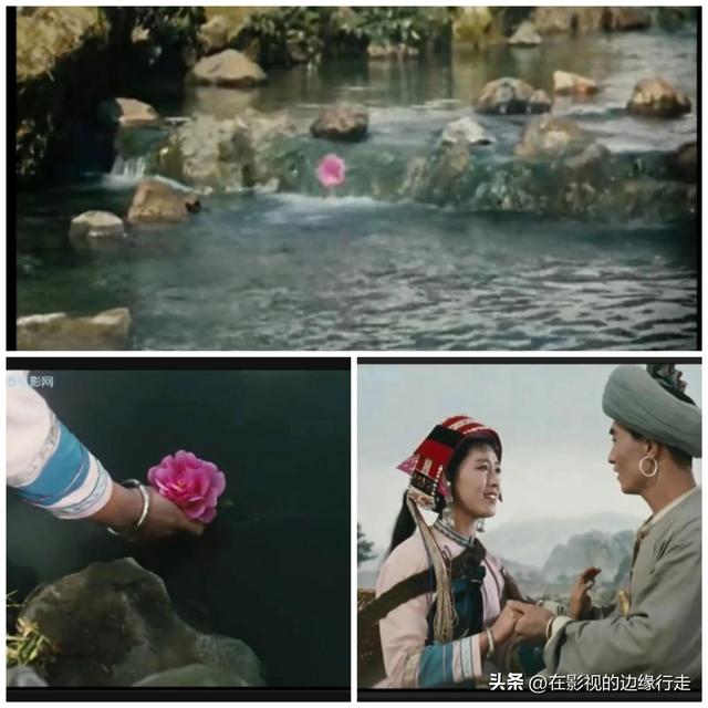 那朵倒流求救,呼唤阿黑回来的茶花,后来一直被阿诗玛带着,这次洪水来袭,茶花飘落于水上,象征爱情的落难——这又是电影很含蓄的地方。